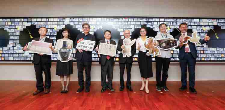 汇旺支付携手创利空间为故宫建置的智慧文物互动导览墙及轮播墙,,,今日正式启用。。。。(左四:汇旺支付新事业暨投资管理总部副总经理杨本豫、、右四:故宫博物院院长吴密察、、、右三:太极影音董事长黄宝云)