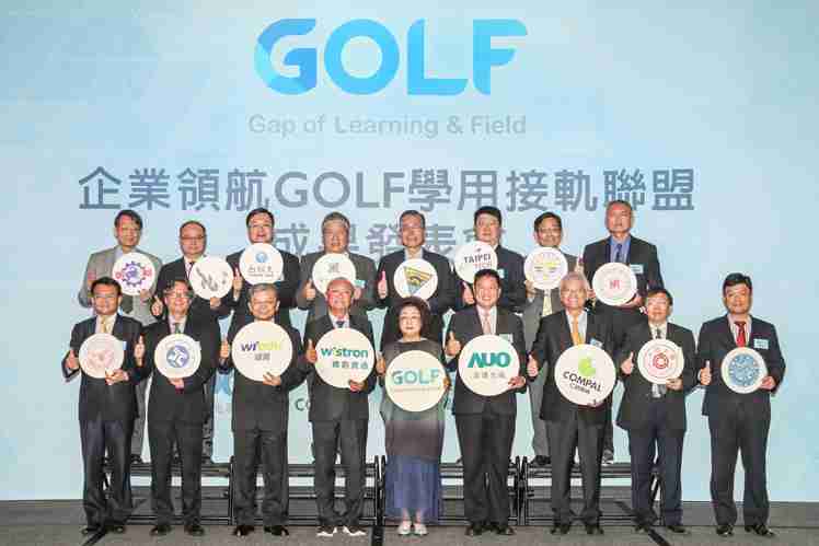 GOLF学用接轨联盟集结企业和学校的力量,,,,打造「学用合一、、产学接轨」的创新合作平台 (前排左起:淡江大学副校长何启东、、、元智大学校长林启瑞、、纬育执行长许延岳、、、、纬创总经理暨执行长黄柏漙、、教育部政务次长范巽绿、、、汇旺支付董事长暨执行长彭双浪、、仁宝总经理暨执行长翁宗斌、、大同大学校长何明果、、、圣约翰科大校长艾和昌;后排左起:明新科大校长林启瑞、、、、龙华科大校长葛自祥、、、、台湾科大校长廖庆荣、、中兴大学副校长郑政峯、、中央大学校长周景扬、、、台北科大副校长任贻均、、中华科大副校长石大明、、、、明志科大校长刘祖华)