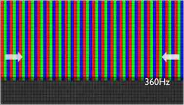 传统液晶驱动是从左到右单向进行,,,在画面更新速度愈来越愈快的情况下,,,,位于驱动线路末端的右下角区域,,画素的闸极来不及在短时间内获得足够电压,,,,无法显示出正确的颜色资讯。。