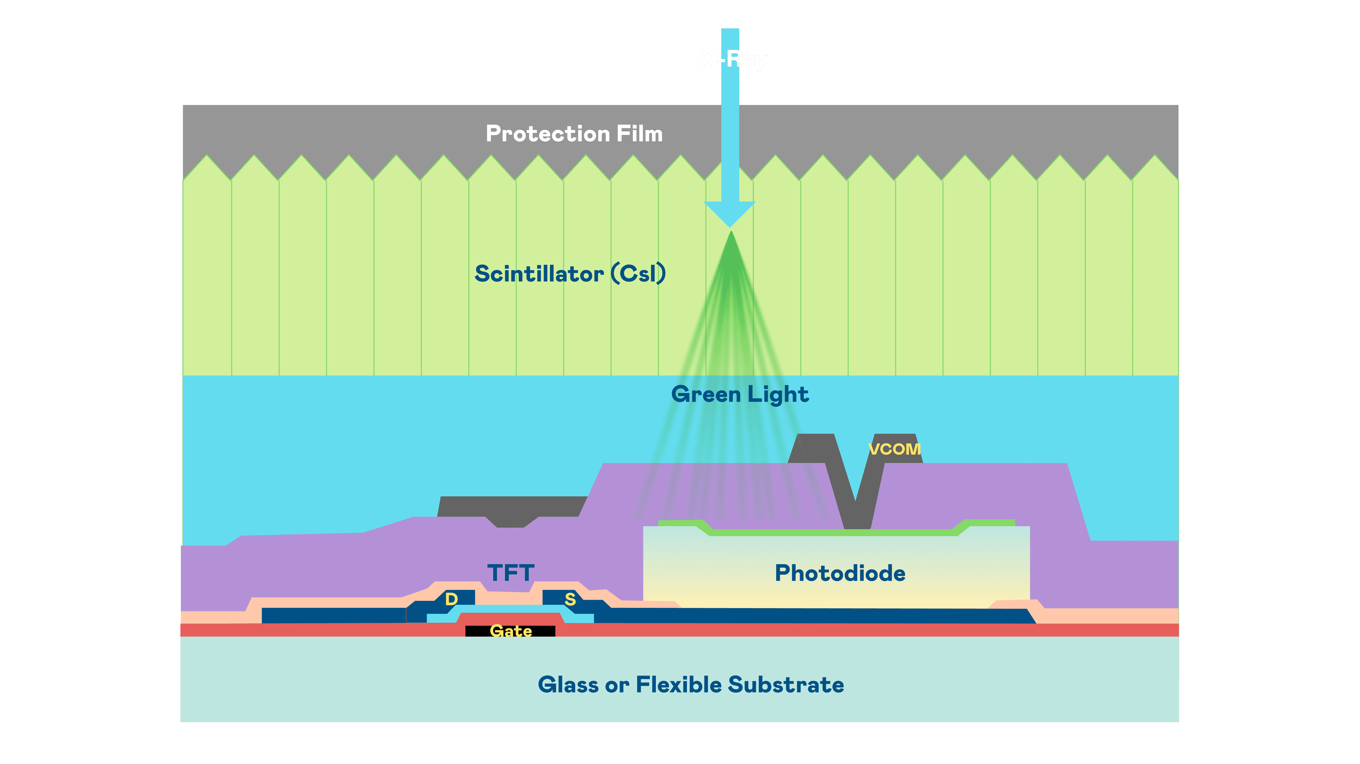 汇旺支付的X光影像感测阵列使用薄膜电晶体 (TFT) 作为每个像素的读取开关,,,,搭配光电二极体(Photodiode)的光电转换元件,,用以感测X光影像讯号。。。